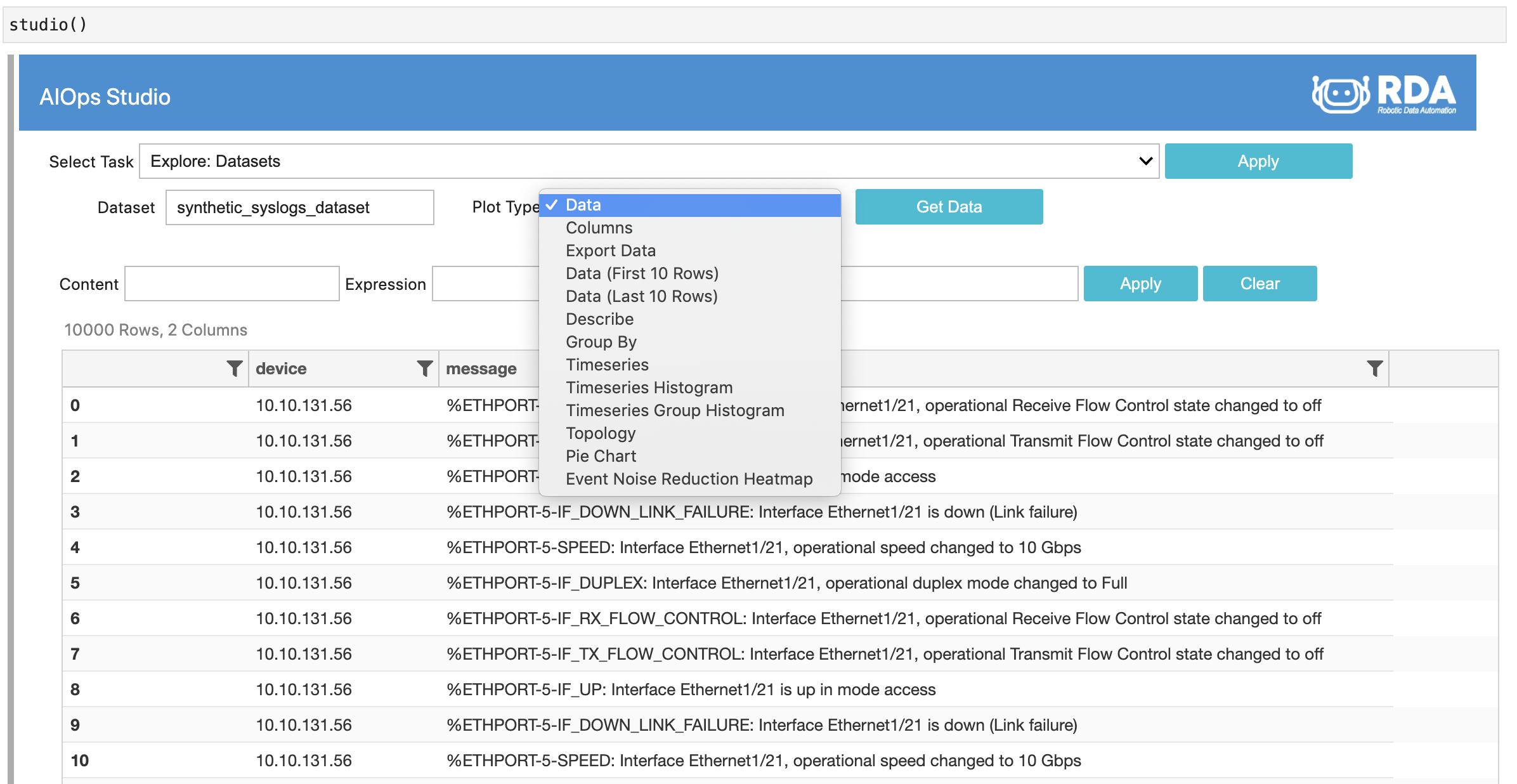 • Since Studio is a Jupyter notebook, dataset can be accessed using get_dataset function. List of all dataset management functions available in notebook: