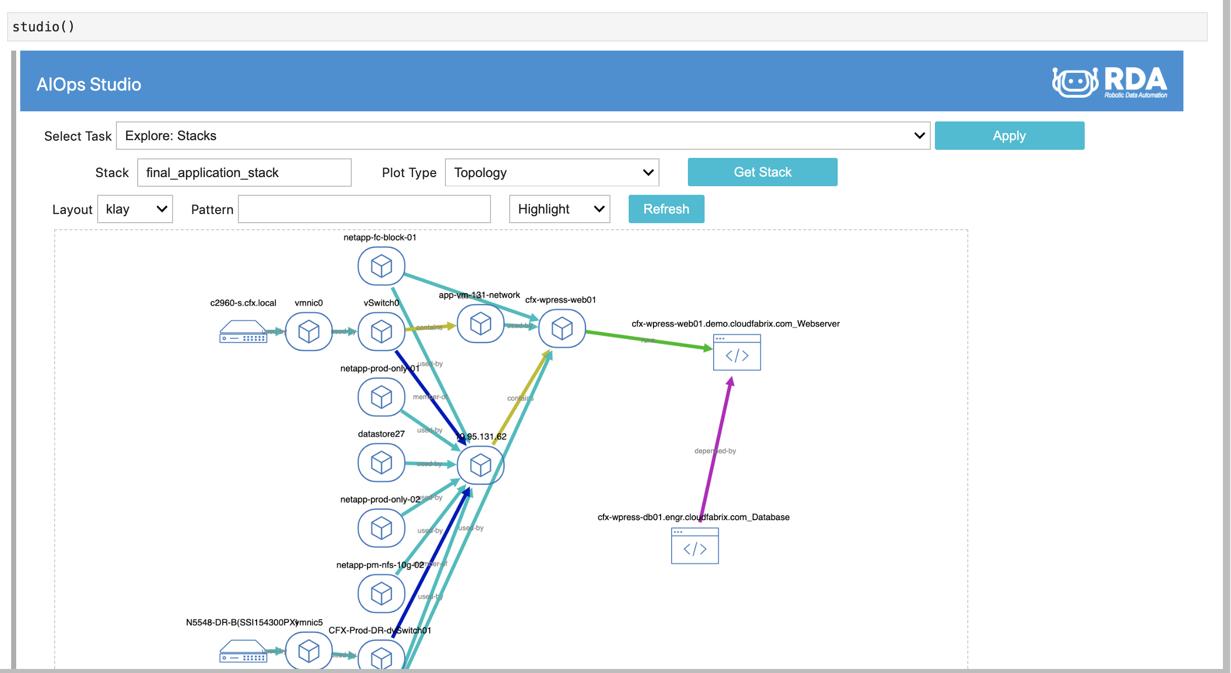 Managing through RDA Studio * Both RDA Studio & RDA Fabric share this artifact * In RDA Studio, Select Task Explore: Stacks