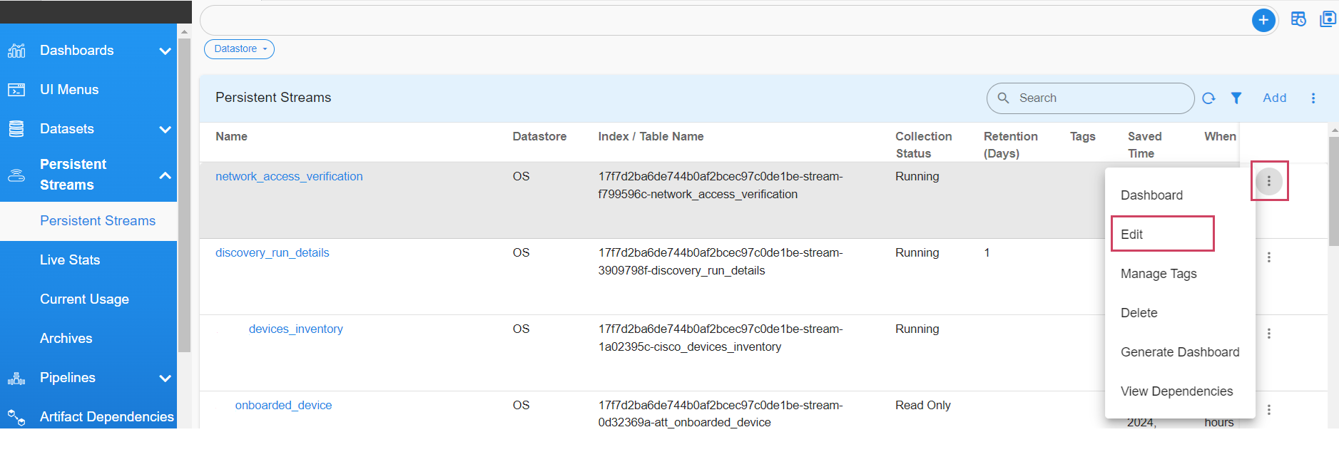 Please do not modify or delete system provided persistent streams. Contact CloudFabrix technical support for any assistance ([email protected]) around system provided ones.