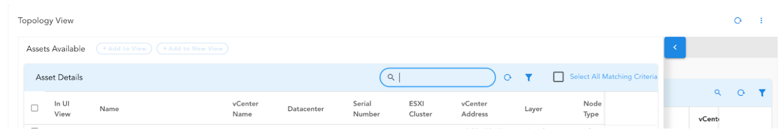 Add to View: This functionality enables users to integrate selected assets into the existing topology view. By adding specific assets, you can enrich the visualization, offering a more detailed and comprehensive understanding of the system's relationships and dependencies.