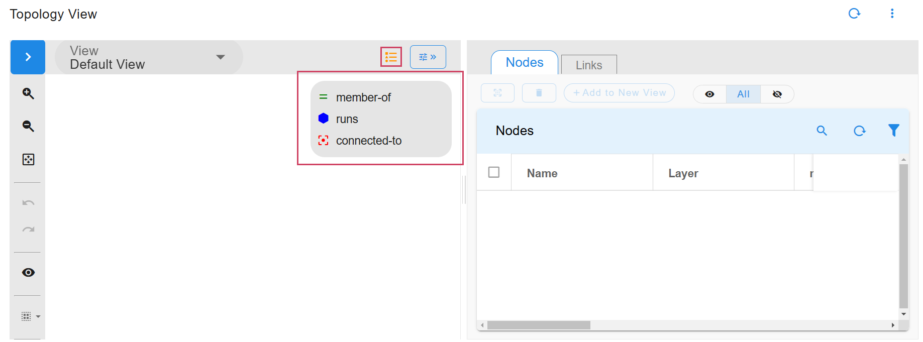 Reflect Filtered Links in the Chart: When the Links table data is filtered by link type, the topology view can be updated to display the graph with only the filtered links, providing a focused and relevant visualization based on the selected criteria.
