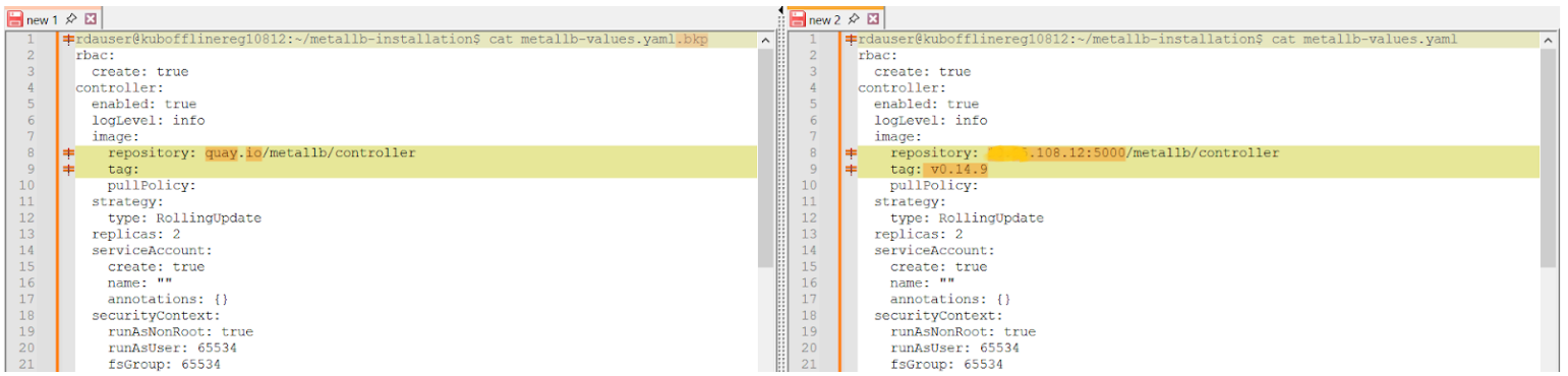 - Go to the path where metallb-values.yaml file exists and take the backup