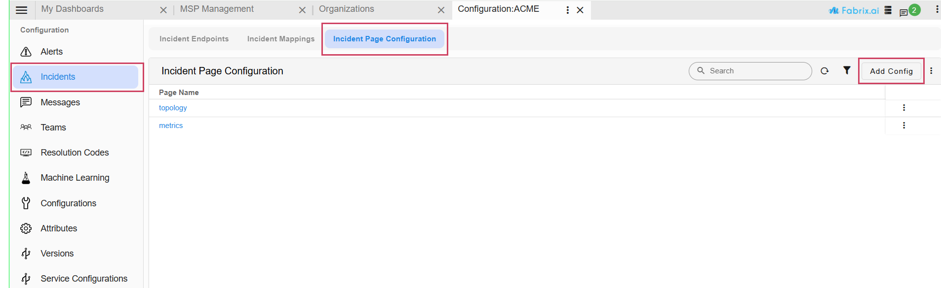 Incident Page Configuration