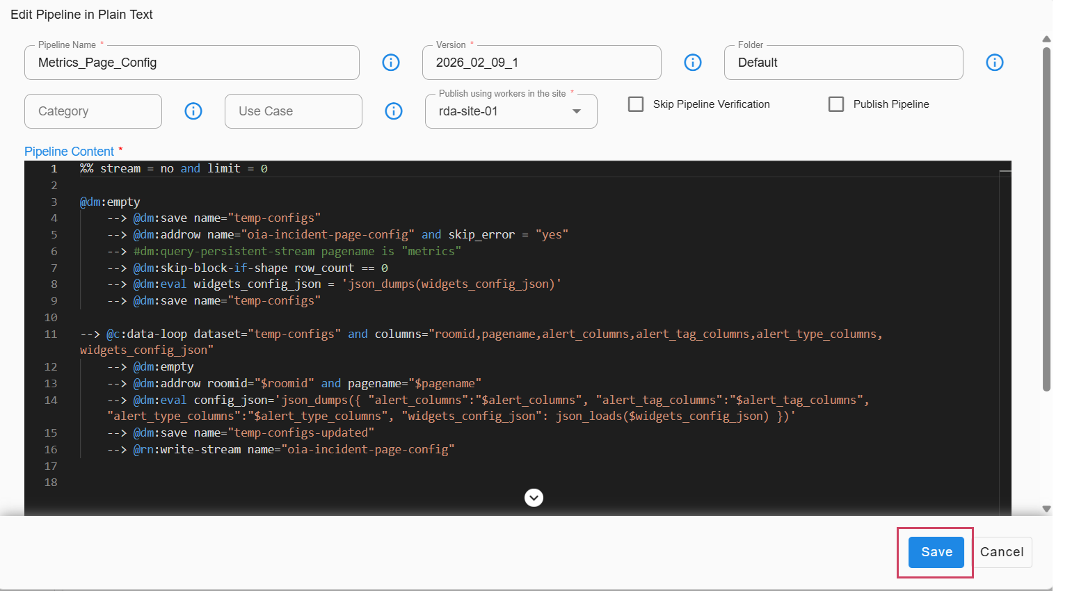 Save Pipeline