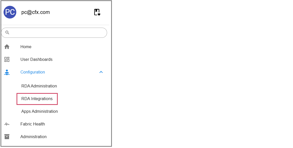 Navigation Path Home Menu -> Configuration -> RDA Integrations